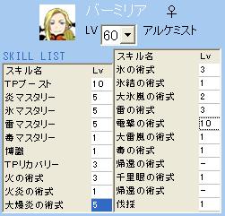 ●バーミリア(アルケミスト♀) ほとんどのスキルを覚えさせた贅沢な構成です。